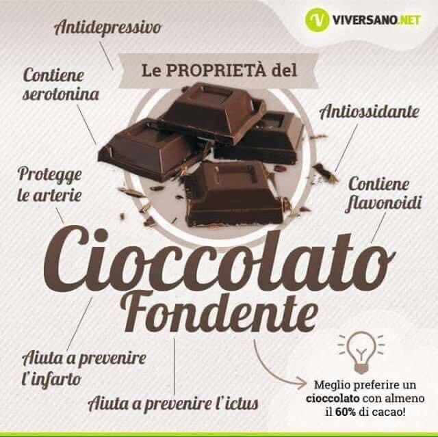 😋Consumare 20 grammi di cioccolato fondente al giorno fa bene all’umore! Magnesio, caffeina e teobromina di cui il cioccolato è ricco, combattono la stanchezza e aiutano ad affrontare lo stress.