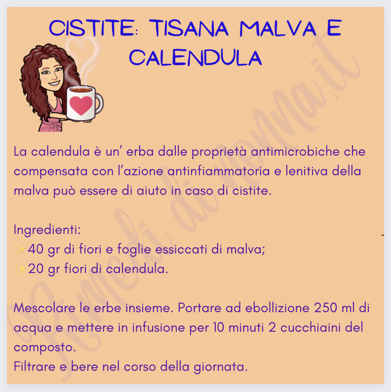 Quando la cistite è nella sua fase più acuta può rendersi necessario diminuire il grado di acidità delle urine e l’antiacido di più semplice utilizzo che possiamo assumere è il bicarbonato di sodio: 1 cucchiaino di bicarbonato di sodio in mezzo bicchiere d’acqua, due volte al giorno e uno prima di coricarsi la sera può essere di aiuto. Se compaiono anche lievi dolori al basso ventre, una borsa dell’acqua calda potrà dare sollievo.