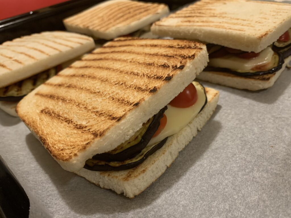 Grigliare anche le fette di mozzarella per circa due minuti (anche meno) per lato e, infine, le fette di pane ritagliato a misura.