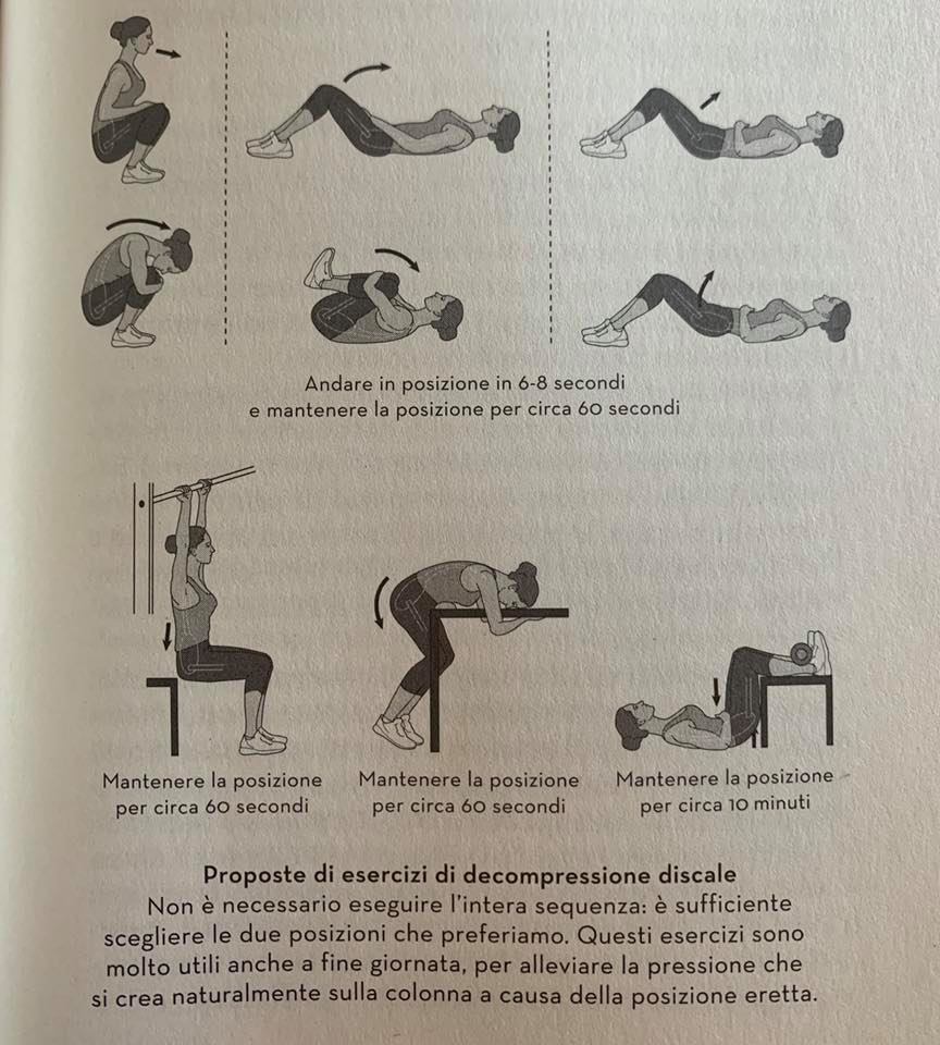 Sono sufficienti pochi minuti al giorno dedicati ad alleggerire la pressione che la nostra posizione eretta provoca a causa della gravità. I muscoli più importanti, in questo senso, sono quelli del cosiddetto CORE, cioè tutto il comparto che determina il nostro girovita, tra cui addominali, obliqui, trasversi, lombari, glutei.